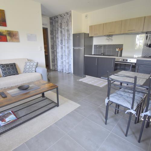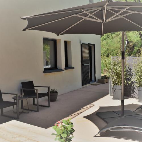 E CASETTE : Appartement indépendant de 38 m2 avec accès privé, comprenant un salon séjour cuisine entièrement équipé (réfrigérateur congélateur, lave linge, four pyrolyse, plaque induction, four micro-onde, cafetière, bouilloire, etc ...), TV écran plat, 1 chambres avec lit 160 x 200 et armoire étagère et penderie, 1 salle d'eau privée avec douche, vasque, wc, sèche serviette, Terrasse de 12 m2, climatisation et wifi.