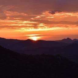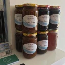 Cuisine locale, un régal, avec une vue sur le village et les montagnes.