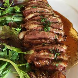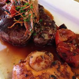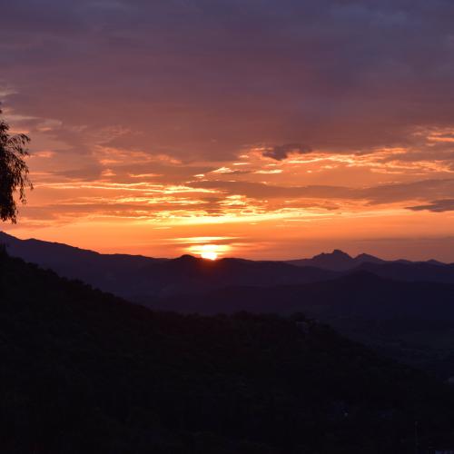 Cuisine locale, un régal, avec une vue sur le village et les montagnes.